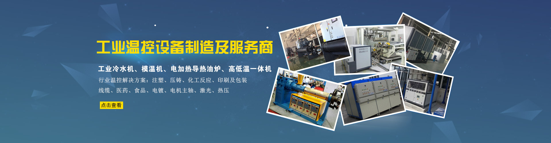 我們的產品主要包括:冷熱一體機、油循環(huán)溫度控制機、水循環(huán)溫度控制機、工業(yè)冷水機、冷油機、螺桿式冷水機、熱泵機組、蒸發(fā)式冷凝機組。針對不同行業(yè)的專業(yè)溫度控制需求,公司還研發(fā)出了行業(yè)專用溫控設備,如變速箱檢測專用冷熱一體機、橡塑專用水溫機、壓鑄專用油溫機、防爆模溫機、液壓系統(tǒng)專用冷油機等。